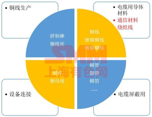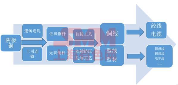 電工銅桿生產工藝這方面目前主要還是連鑄連軋的上引工藝并存的,但是上引工藝會越來越小,因為隨著國家政策的影響,因為電線纜廠這種自給自足的這這種上引工藝,能耗非常大,所以基本上都采用外購的銅桿,然后這種外購的銅桿的用量已經達到四分之三,電工用銅及銅合金產品的種類主要包括擠制棒、銅線坯這方面主要用于銅線的生產需要用到,然后通過銅線坯以及拉拔工藝生產的特殊銅線主要用于電纜的導體材料及通信材料,另外還有銅管、銅帶、銅箔這塊用的比較多,比如電纜線屏蔽用,還有空調啊,還有各種應用場合,另外的銅臺和銅母線主要用于設備的連接。
