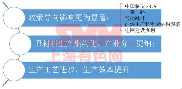 就未來的產業發展趨勢來說,就可以了解政策導向的影響會越來越顯著,像之前講到的“中國制造二零二五”“一帶一路”,尤其是“節能減排”,還有能源生產和消費結構的調整,再有在電工領域里面電網建設規劃這方面對我們的電工用銅鋁的影響非常顯著,這就導致了很多的原材料生產、集約化。就像剛才電工圓銅桿、電工圓鋁桿都是直接直接外購,產業分工會更加細化;因為產業分工更加細化了,自然導致生產工藝基本進步,然后生產效率的提升。