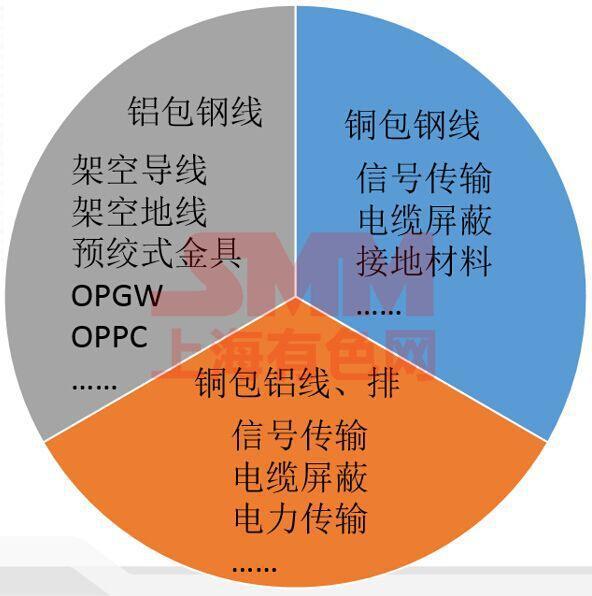 另外雙金屬銅包鋼、銅包鋁和鋁包鋼產品的生產工藝主要有電鍍法、熱鍍法、連續擠壓包覆法,還有焊接包覆法以及雙金屬灌注軋制法等。這些方法生產出銅包鋼,銅包鋼線主要用于信號傳輸以及電纜屏蔽,還有鐵鐵路以及非洲一些地區的接地材料材料;然后銅包鋁線、排這些產品用于信號傳輸、電纜屏蔽以及電力傳輸等,鋁包鋼線產品主要用在架空導線、架空地線以及預絞式金具,還有OPGW和OPPC這方面等。