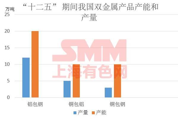 目前電工用雙金屬市場產能過剩嚴重。鋁包鋼年均用量12萬噸,產量約20萬噸;銅包鋁年均用量5萬噸,產量近10萬噸;銅包鋁年均用量3萬噸,產量約10萬噸。