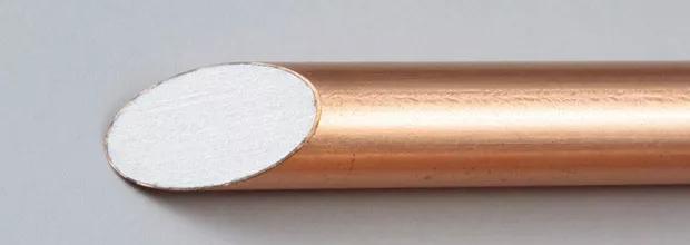 上面也提到,銅也有很多種,我們可以從銅芯的線皮上看,一般來說全銅網線是外層新料,而無氧銅是內外新料。也可以用刀刮開表面或者橫截面: