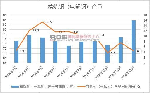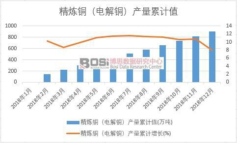 據博思數據發布的《2019-2025年中國精煉銅市場分析與投資前景研究報告》表明:2018年我國精煉銅(電解銅)累計產量達902.9萬噸,比上年累計增長8%。