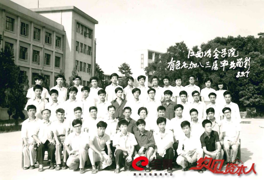 姜純畢業于江西冶金學院(現在的江西理工大學)有色金屬專業,圖為姜純(第三排右五)大學畢業照