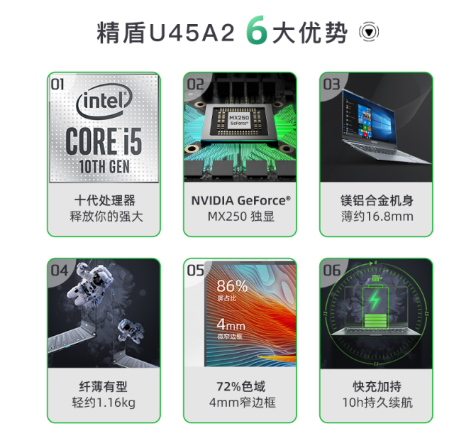 上個(gè)月神舟發(fā)布了精盾系列新品U45A2,這款十代芯品意義非凡,官方海報(bào)上明確標(biāo)示出產(chǎn)品的6大優(yōu)勢(shì)。面向廣大的消費(fèi)者也是為了解決其中的幾個(gè)痛點(diǎn)。作為商務(wù)本,一直被詬病的就是性能差,太厚重,待機(jī)差。充電慢。那么為了解決這些問(wèn)題,神舟精盾用鎂鋁合金以及全新的設(shè)計(jì)成功塑造了經(jīng)典產(chǎn)品。