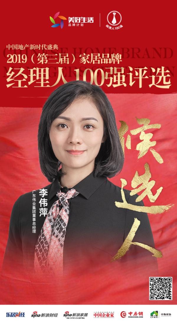 廣東偉業集團董事總經理李偉萍獲媒體提名,進入“2019中國家居品牌經理人100強”評選。