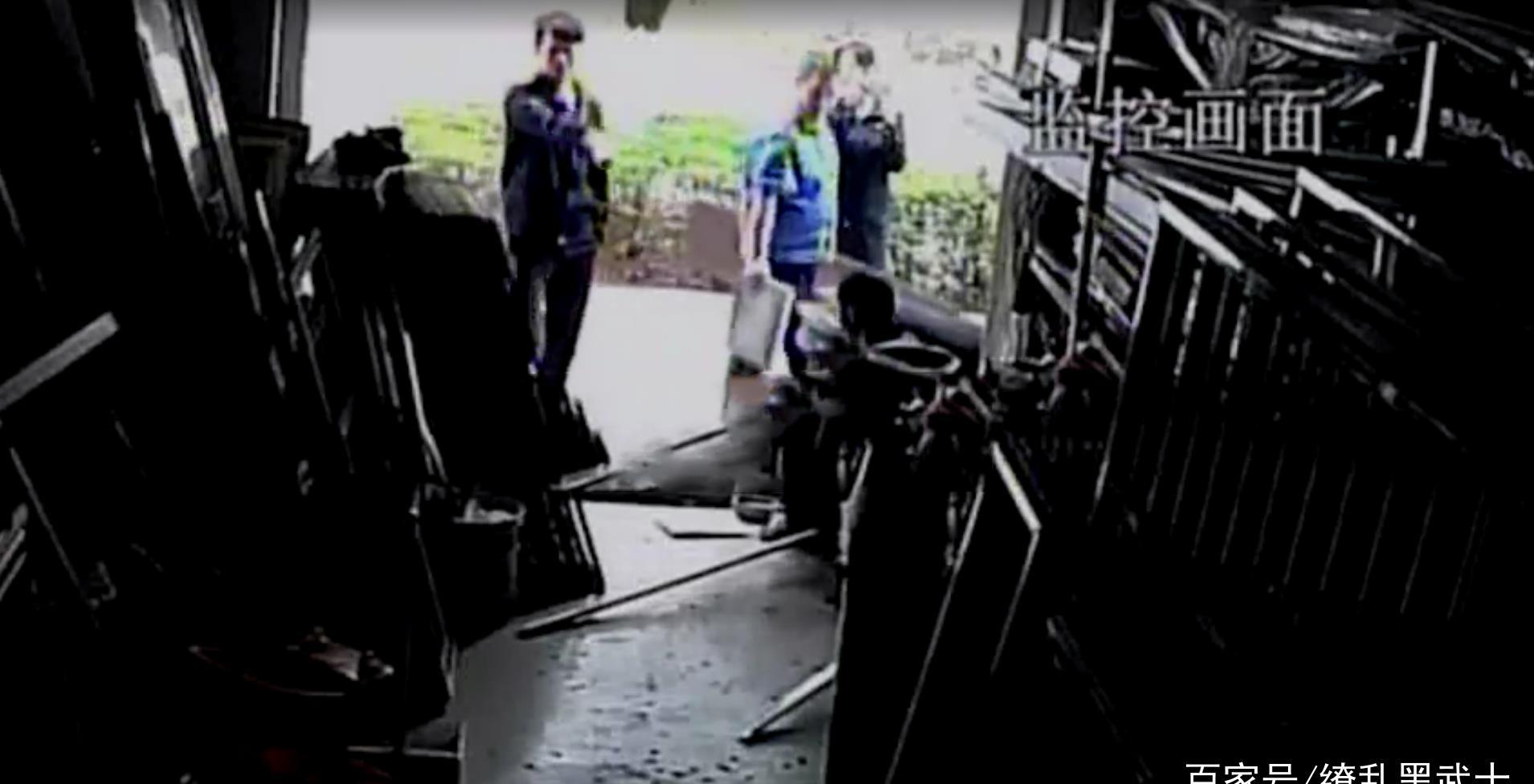 從網(wǎng)上流傳的視頻可以看到,拍攝的角度是來自于店內(nèi)監(jiān)控。幾名身著城管制服的男子經(jīng)過一家五金店門口,而店鋪中有一名男子正坐在店門口。接著一名城管上前指著男子似乎說著什么,而男子似乎對其進行反駁。