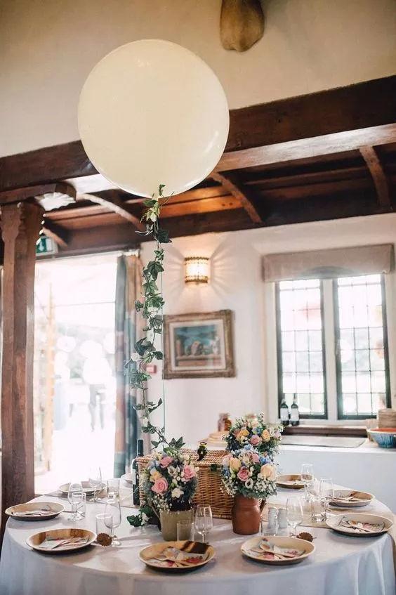 把氣球固定在餐桌中央,無(wú)論是長(zhǎng)條型餐桌,還是圓桌,都可以延伸整個(gè)空間的視覺范圍,拉高畫面,增加輕盈活潑的感覺。