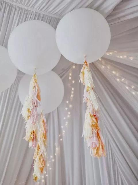 如果需要增加一點(diǎn)活潑的元素,可以在大圓形氣球下方增加一些小氣球。或者在氣球的綁帶上增加彩色緞帶、藤蔓等裝飾。