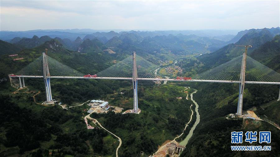 當日,貴州平塘至羅甸高速公路控制性工程平塘特大橋成功合龍,該橋擁有332米高的全球最高混凝土橋塔。 新華社記者 楊文斌 攝