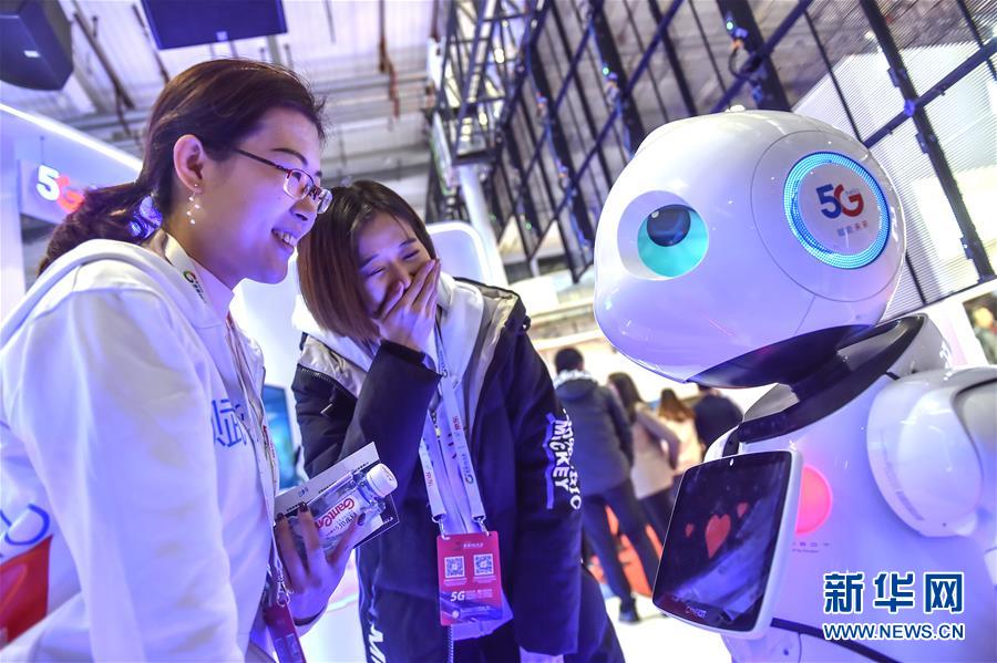參觀者在北京舉行的2019世界5G大會上了解一款5G機器人(11月21日攝)。新華社發(彭子洋 攝)