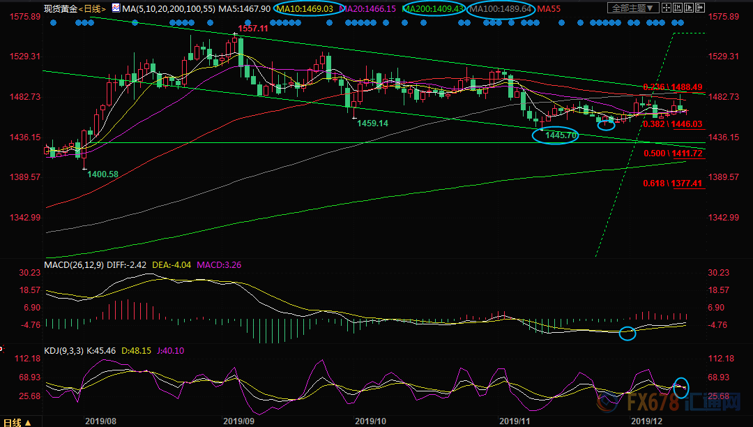 解析:國際貿易局勢出現了一些樂觀消息,美國股市再創歷史記錄新高,出口民調顯示英國大選保守黨將會大勝,也打壓避險需求,令金價再次受制于100日均線下方,市場對晚間美國零售數據的預期比較樂觀,短線金價面臨重回跌勢的風險。不過,美元的大幅走弱,可能會略微限制短線的下行空間。