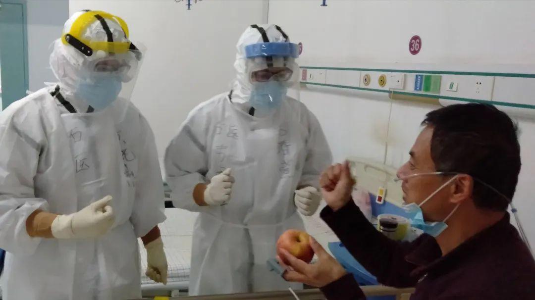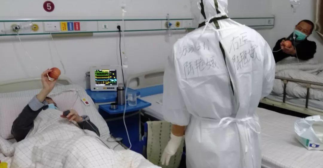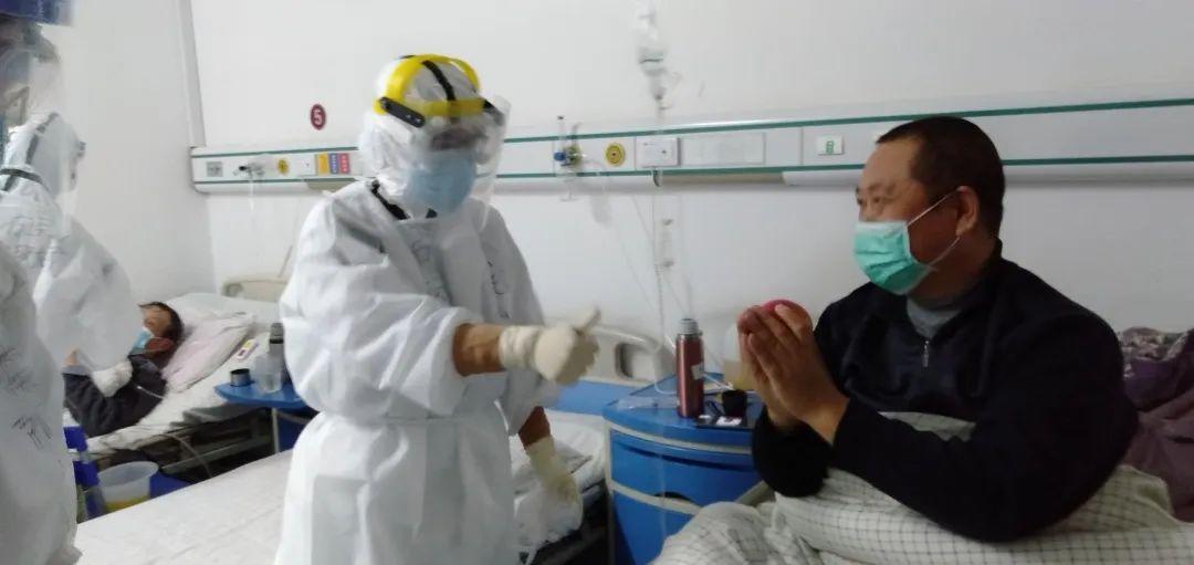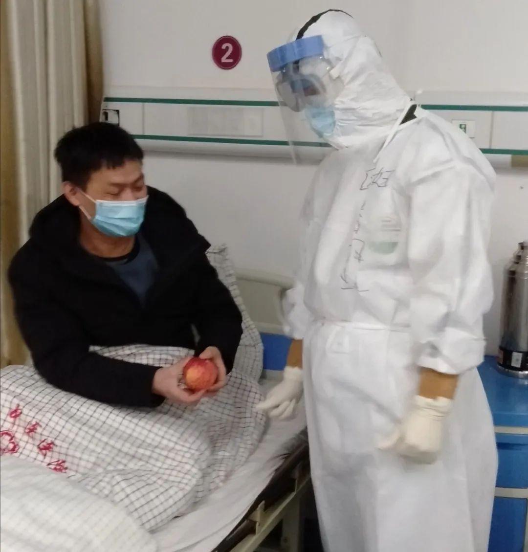 醫護人員對病人的照顧無微不至,當聽到有病人說好久沒能吃到水果時,醫療隊的隊員就把酒店給自己的餐后蘋果節省下來,拿到隔離病區分發給病人。