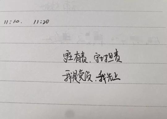 在位洪明的筆記本上,有他涂鴉的一句話,也許能解釋他的堅持,他寫道:“守土有責、守土擔責,我是黨員、我先上!”