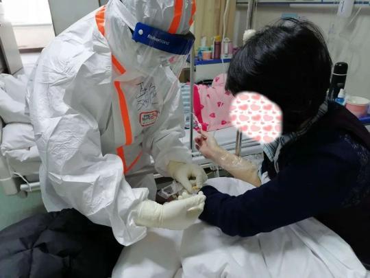 聶艷說,接到這個(gè)“特殊的任務(wù)”時(shí),不求回報(bào)、無論生死在心里默念了無數(shù)遍。每天穿著厚厚的防護(hù)服進(jìn)入病房的時(shí)候,同事之間都會(huì)相互加油。有一回,給一位90多歲的爺爺換完尿不濕后,聶艷已經(jīng)滿頭大汗,但當(dāng)爺爺給她豎起大拇指時(shí),她說自己高興得像個(gè)孩子。