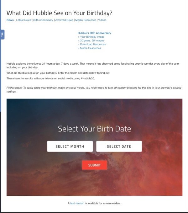 哈勃生日那天看了什么? 在下面輸入月份和日期以查找!